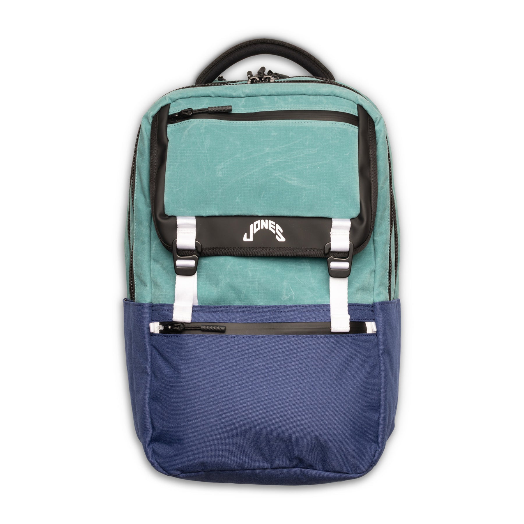 The Jones A2 Backpack is the latest A-series for traveling professionals. With ample space and separation this pack will keep you organized for life on the go. The padded shoulder straps and cushioned back support ensures a comfortable carry when loaded with your daily necessities. The water bottle sleeves are made out of a soft-hand feel vegan P.U. material giving way to a smooth yet durable feature. The A2 is the first Jones product to offer a hidden embroidery location under the front buckled flap allowing for a sleek look while still carrying the meaning of your design.