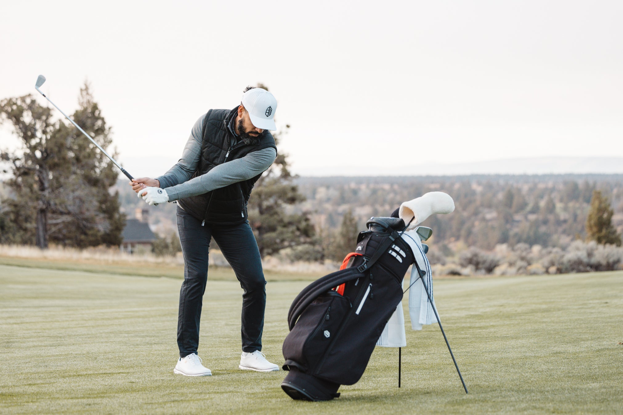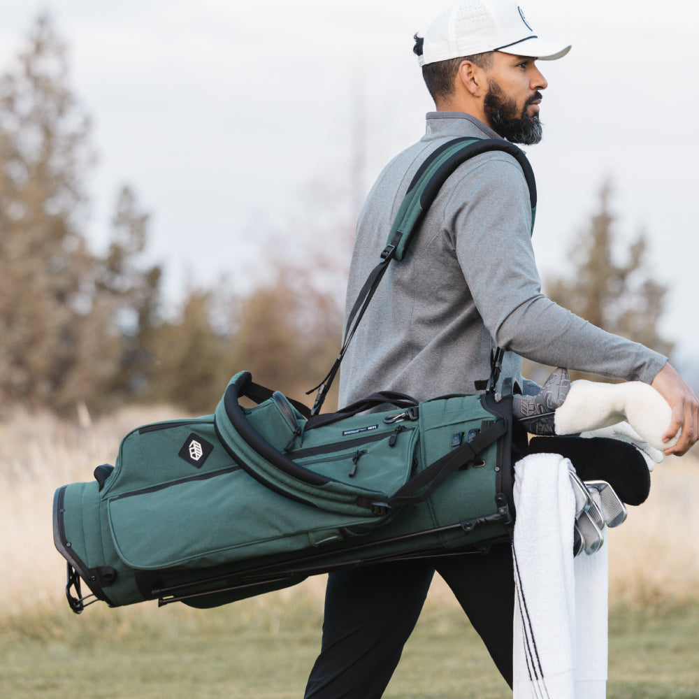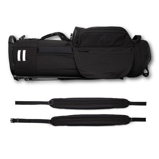 Designed with a versatile single or double shoulder strap configuration the Trouper 3.0 is your ideal companion on the course. A large insulated front cooler pocket has enough space to keep four 16oz cans cold. The two newly improved fleece-lined valuable compartments and seven-pocket design secures valuables while allowing for straightforward access. A large five-way divider allows for simple organization and an easy pull for all 14 clubs even with oversized grips. Simply put the Trouper 3.0 delivers an effortless and reliable experience for any player round after round. Featuring All-New Straps and a bolstered stand mechanism.